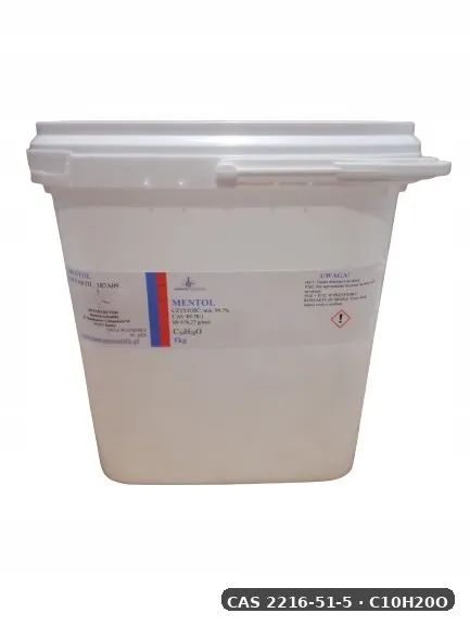 - Inne nazwy: (1R,2S,5R)-2-izopropyl-5-metylocykloheksanol, mentol naturalny, kryształki miętowe
